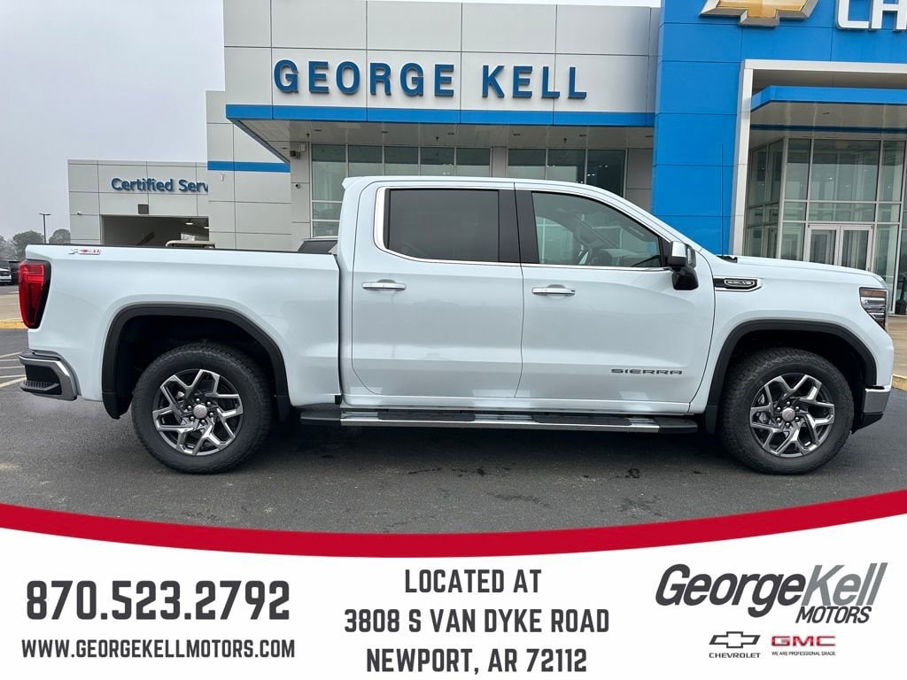 Free Service Pickup and Delivery available within 75 miles. Glacier White Tricoat 2026 GMC Sierra 1500 SLT 4WD 10-Speed Automatic EcoTec3 5.3L V8 10-Speed Automatic, 4WD, Dark Walnut/Slate Leather.